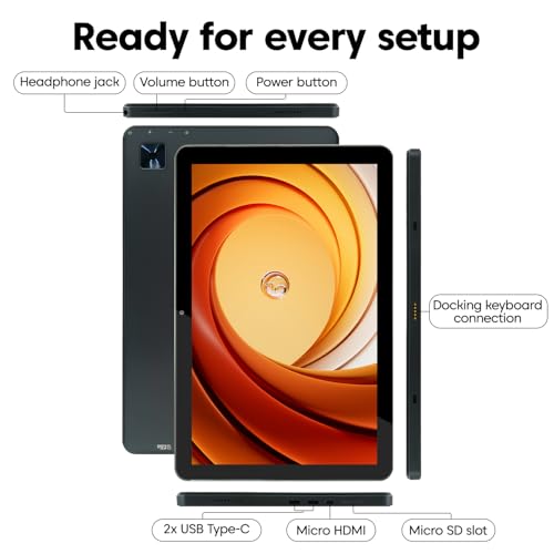 - Ultra Connected – Dual USB-C & Micro HDMI: Stay future-ready with 2× USB-C ports for fast charging and peripherals, plus a Micro HDMI for display output. Flexible, efficient, and built to power any task on your tablet PC Windows 11.