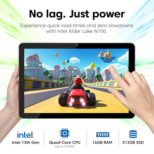 - Blazing Fast 16GB RAM & 512GB SSD: Enjoy high-speed multitasking with 16GB of RAM and lightning-fast 512GB SSD storage, plus a 512GB MicroSD card slot for more space. Open apps instantly, breeze through tasks, and store essentials without compromise on your 10 Inch Windows tablet PC.