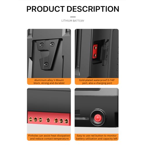 - Reliable and Durable: Made with high-grade lithium-ion cells and smart circuit protection, this battery helps protect against overcharge, overcurrent, short circuits, and overheating. Its tough outer shell and V-lock mount make it dependable and easy to attach to compatible gear on the go.