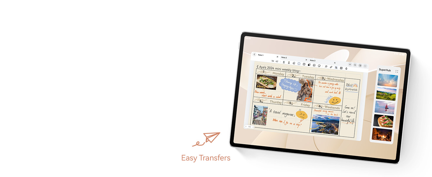 Drag and drop text, images, videos, and songs to SuperHub, to paste, transfer, and share them with connected devices including PCs and phones, and arrange them in batches with greater ease.