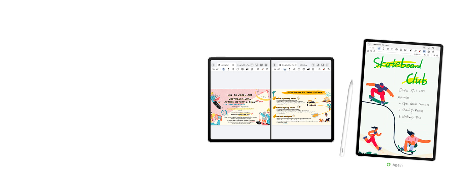 - 【HUAWEI Notes,More Handy Tools 】:The updated HUAWEI Notes comes pre-installed with a myriad of templates. From work notes to study notes, we've got you covered. And it's chock-full of smart features that help you express yourself with greater ease, like a lasso tool that changes the colour of selected text, or Note Replay that combines audio recordings and handwritten text to help you recall and review the content more effectively.