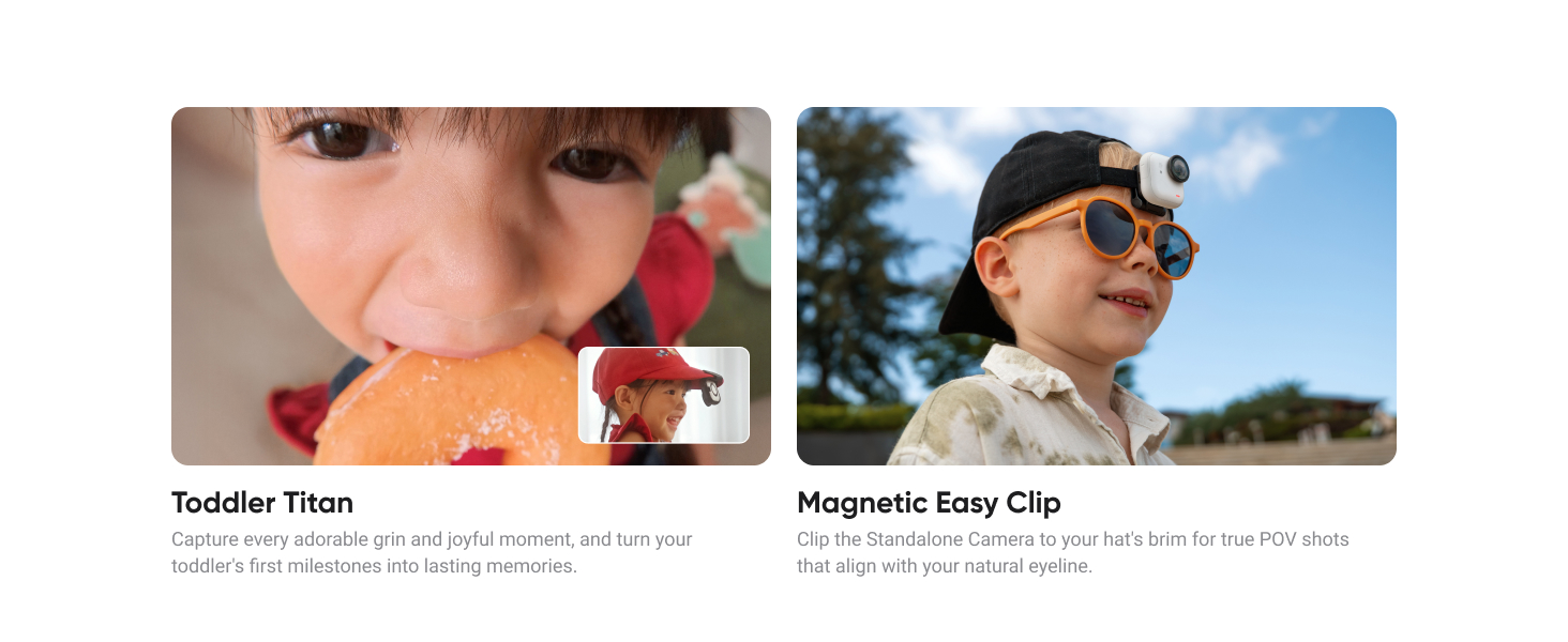 - Hands-Free POV & Wearable – Magnetic mounting lets you clip the camera to a cap or wear it with the Magnet Pendant, freeing up your hands for a first-person perspective.