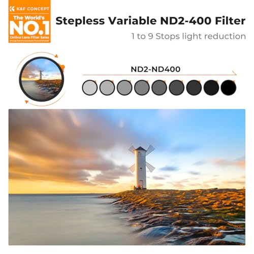 K&F Concept 77mm Variable ND Filter ND2- ND400 Ultra Low Reflection HD Adjustable Fader Neutral Density Lens Filters (Nano-X Series)
