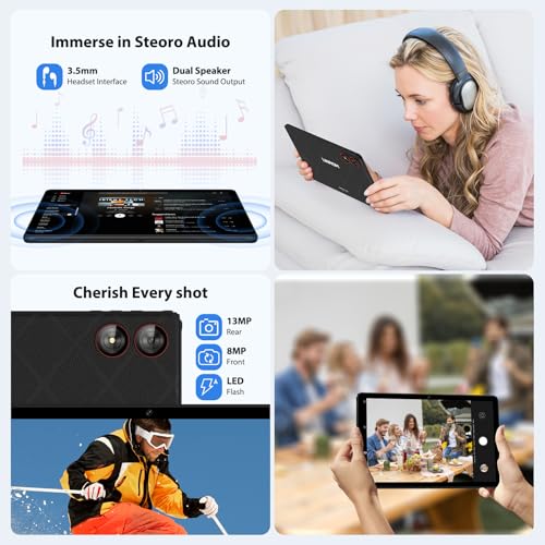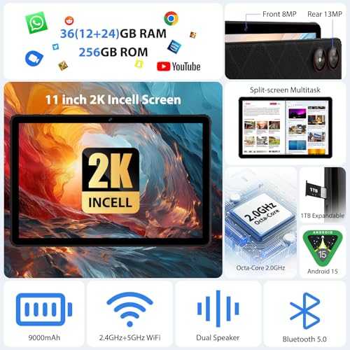 - 【2.4G+5G Dual-Band WiFi + Dual Camera】The 11-inch tablet supports high-speed dual-band 2.4G/5G WiFi, with the 5G band providing faster speeds and a less-wireless-interference Internet experience. Equipped with 8MP front camera and 13MP rear camera for stunning selfies, vivid video chats and recording precious moments. Whether you're sharing memories with loved ones or taking part in online meetings, it's ideal for staying in touch.