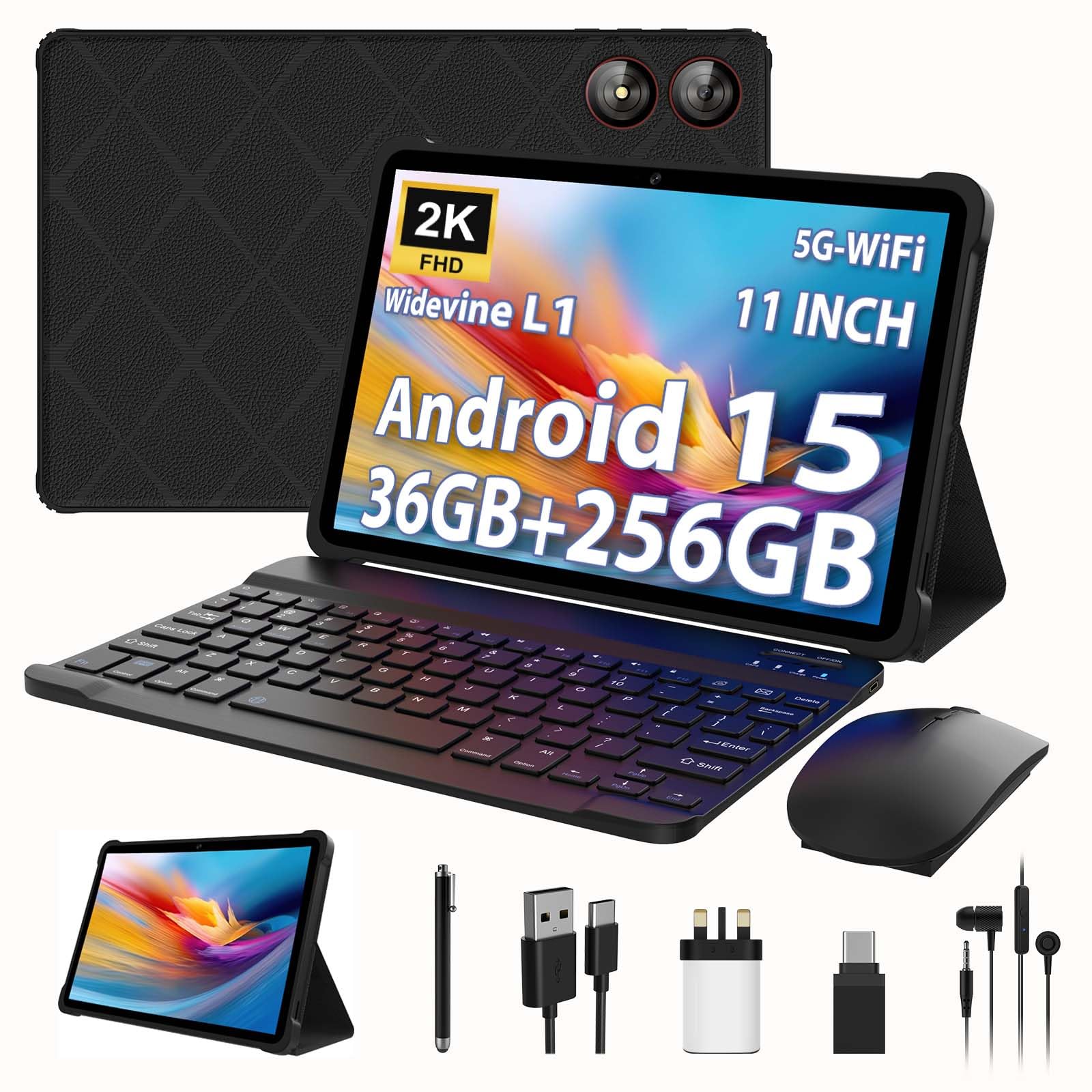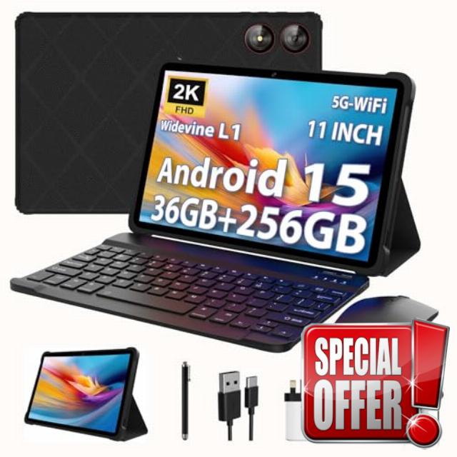 LINROM 2025 Tablet 11 Inch Android 15, 36GB RAM+256GB ROM, INCELL 2000 * 1200, Octa Core,13MP+8MP, WidevineL1/9000mAh/5G WiFi/BT5.0/OTG/GPS-Tablet with keyboard (Black)