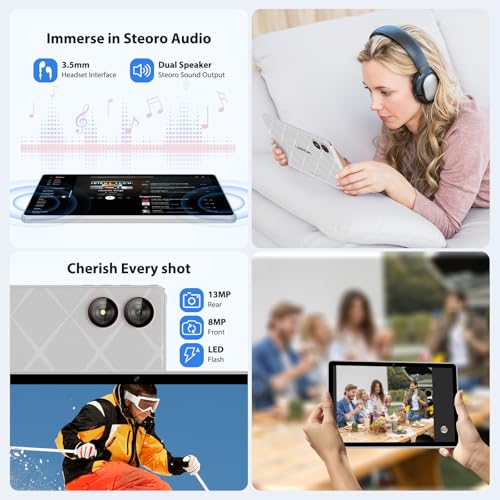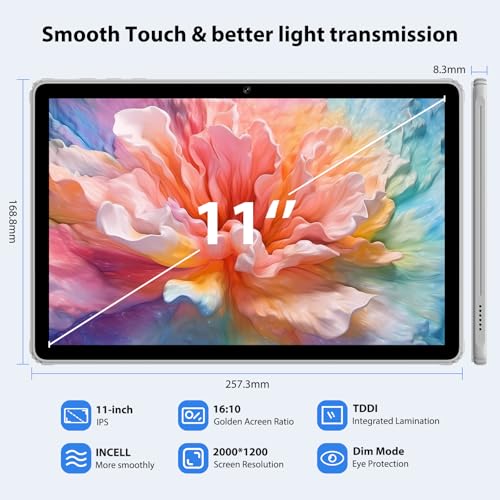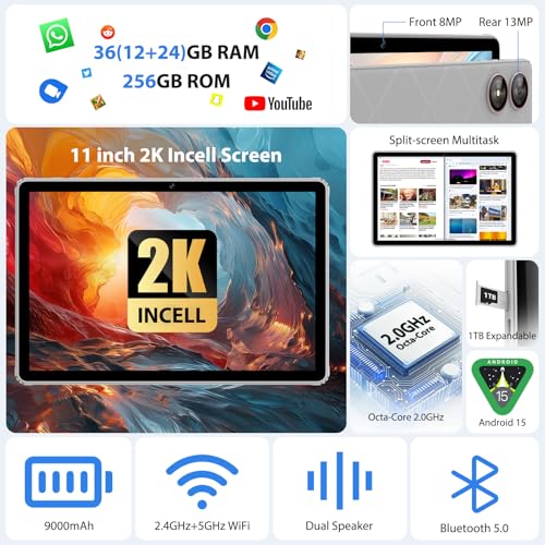- 【2.4G+5G Dual-Band WiFi + Dual Camera】The 11-inch tablet supports high-speed dual-band 2.4G/5G WiFi, with the 5G band providing faster speeds and a less-wireless-interference Internet experience. Equipped with 8MP front camera and 13MP rear camera for stunning selfies, vivid video chats and recording precious moments. Whether you're sharing memories with loved ones or taking part in online meetings, it's ideal for staying in touch.