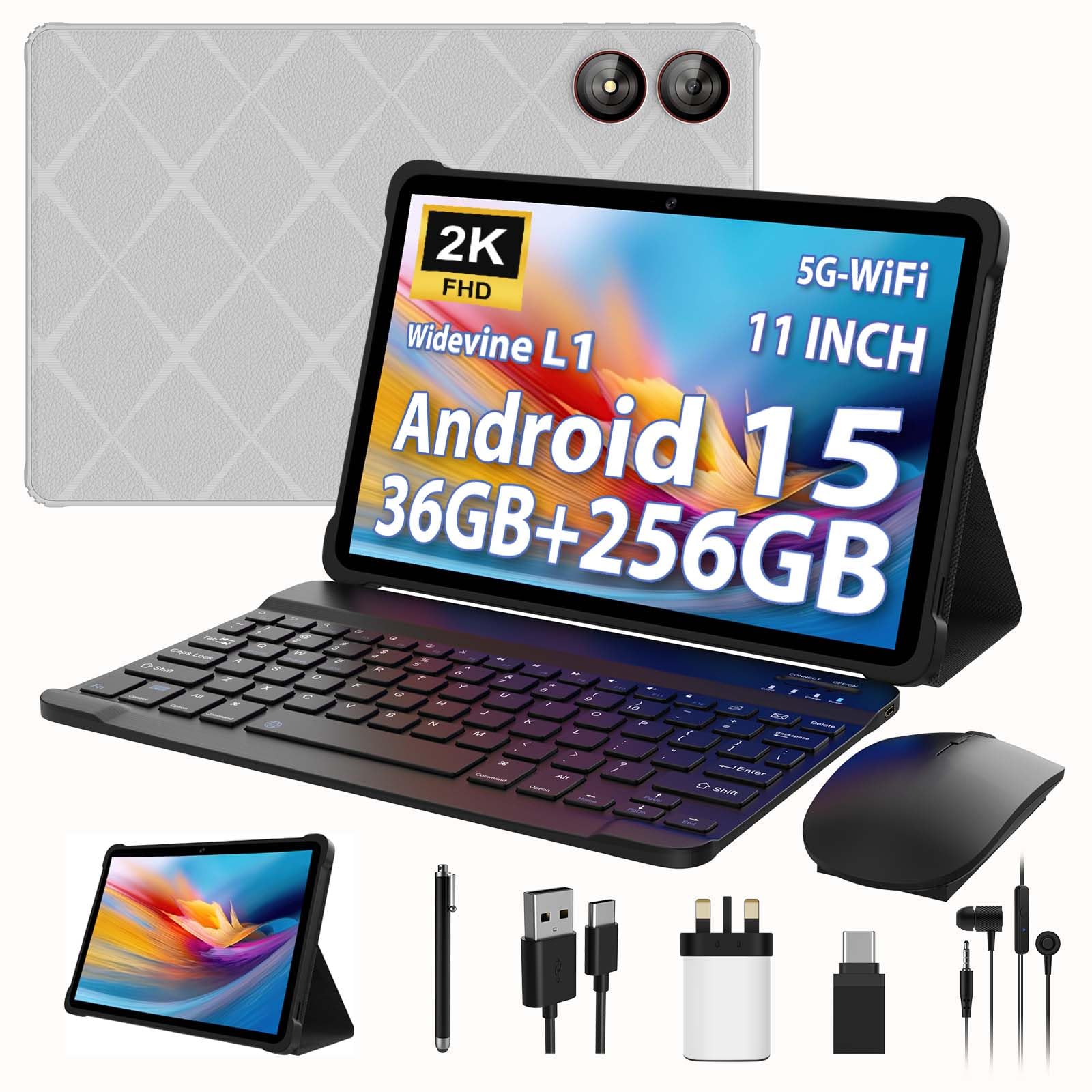 LINROM 2025 Tablet 11 Inch Android 15, 36GB RAM+256GB ROM, INCELL 2000 * 1200, Octa Core,13MP+8MP, WidevineL1/9000mAh/5G WiFi/BT5.0/OTG/GPS-Tablet with keyboard (Gray)