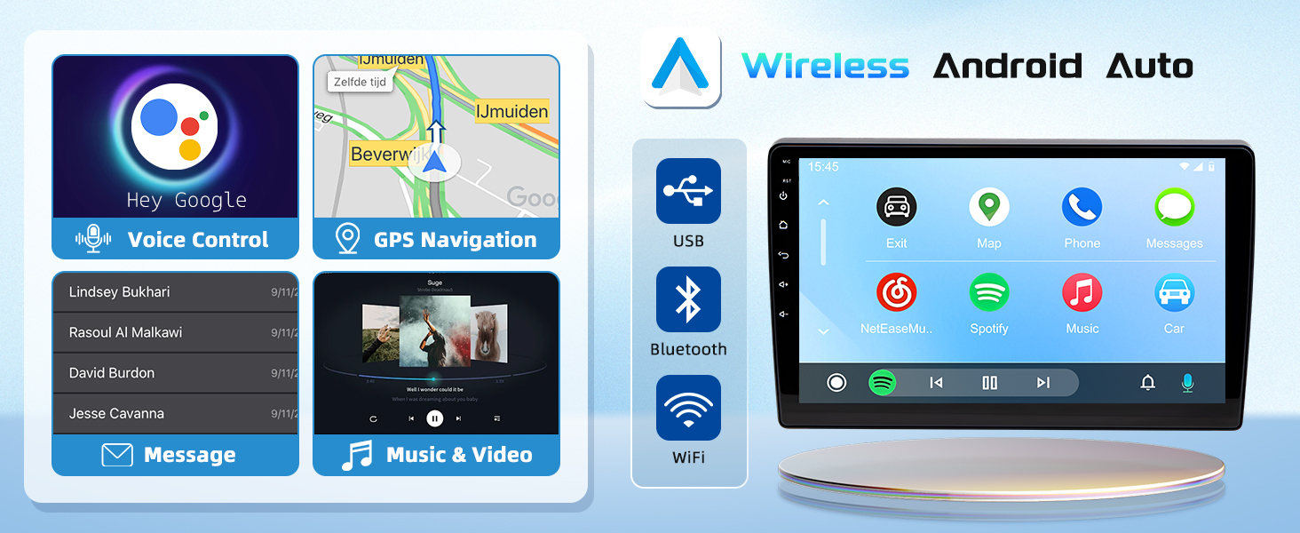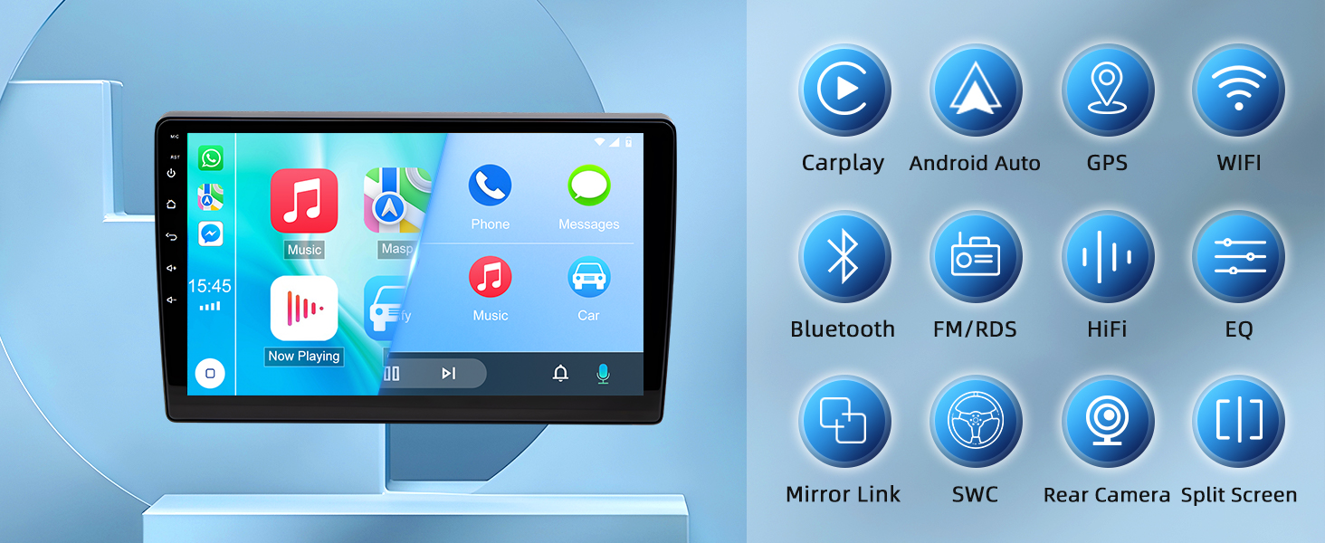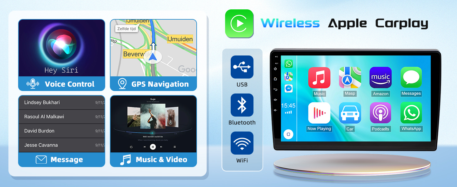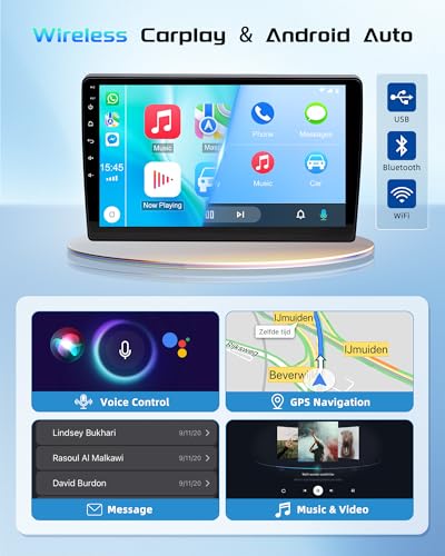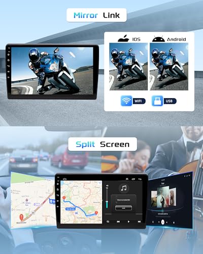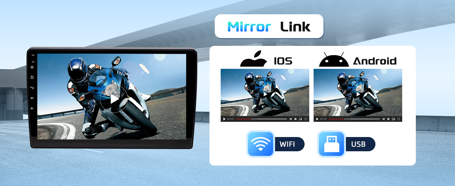 - [Wireless CarPlay and Android Auto,Mirror Link]-Built-in wireless CarPlay and Android Auto! Connect your iOS or Android phone instantly and safely access your apps, contacts, messages and GPS. No more messy cables! -The mirror link function allows you to display and control the screen of your Android or iOS smartphone directly on the large screen of your car's multimedia radio.