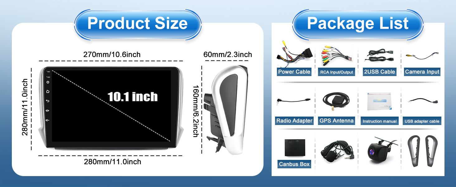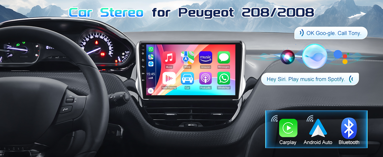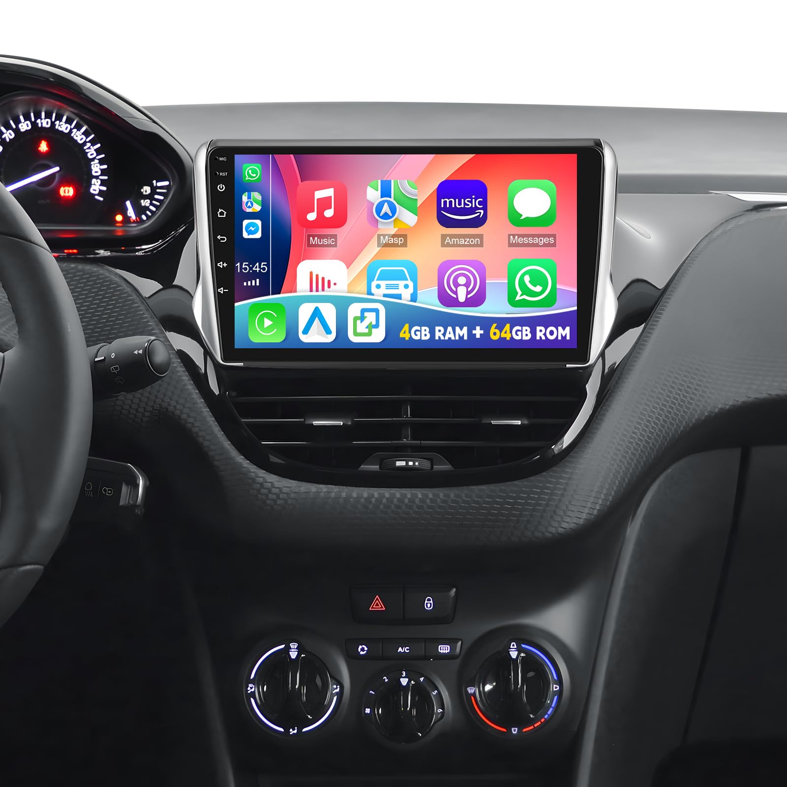 - [Upgraded Car stereo]-Car stereo for Peugeot 208/2008 (2012 2013 2014 2015 2016 2017 2018).Android 14 car radio features a 10-inch touchscreen, a quad-core processor, 4GB RAM + 64GB ROM. The car radio is compatible with iOS and Android via Mirror Link, CarPlay, and Android Auto, and integrates Bluetooth, GPS, WiFi, HiFi sound quality, supports steering wheel control, rear view camera, split-screen, and other functions.