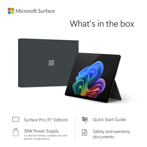 Microsoft Surface Pro (power supply included) | Copilot+ PC | 13” OLED Touchscreen | Snapdragon® X Elite (12 cores) | 16GB Memory | 256GB SSD | Device only | 2024 Model, 11th Edition | WIN 11 | Black