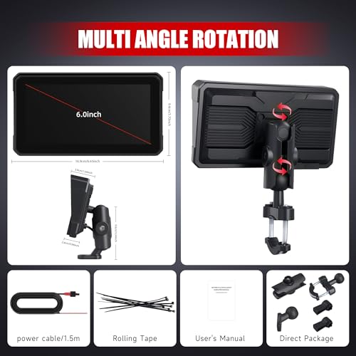 - Easy Installation & Wide Compatibility:Wireless Motorcycle Carplay GPS Navigation System Features a vertical stand installation method and a bracket with a large adjustable angle for a perfect fit in multiple vehicle models. The package includes a universal mount, user manual, power cable, and accessories for a hassle-free setup.
