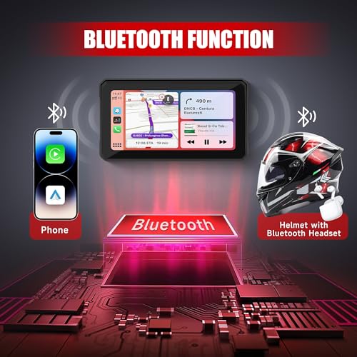 Motorcycle Carplay Screen with Bluetooth, 6 Inch Touchscreen Wireless CarPlay & Android Auto Airplay Screen for Moto GPS Navigation for Motorbike Waterproof, Voice Control, Voice Assistant, TF