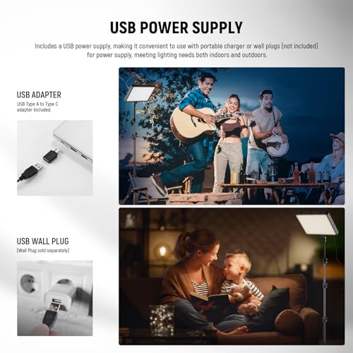 - 【Integrated Power & Control Cable】 The slim LED light panel, 1.01''/2.8cm thick, is compact and easy to carry around. It comes with a 78.7"/2m USB power cable integrated with a lighting controller for easy use. Powered via 5V/2A USB input, it works with USB wall adapters, power banks, desktop PCs, or laptops using the included USB A to USB C adapter, ideal for flexible setups at home or on the go