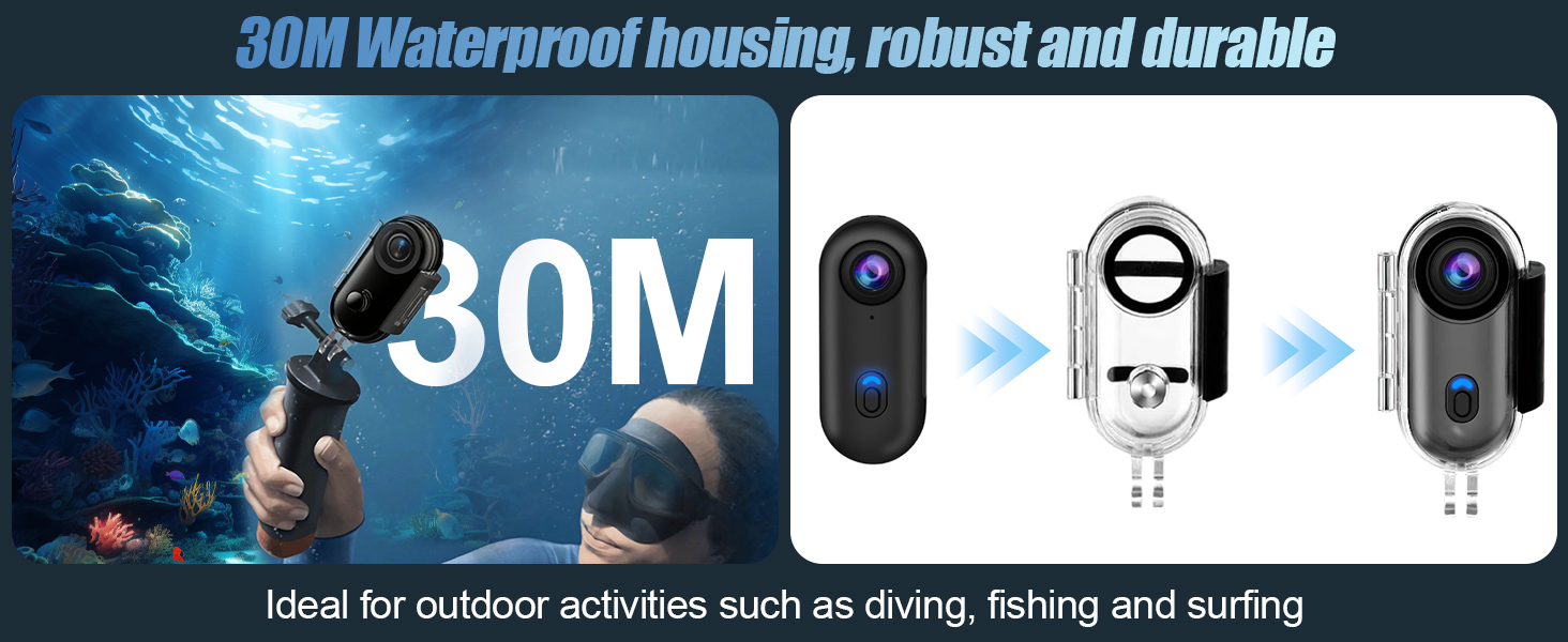 - Robust & Waterproof Design: Equipped with a unique dive housing, the 360 motorcycle camera can normally record in a depth of 30 meters, Not afraid of water pressure. The robust housing withstands shocks and scratches and works stably even in wet and harsh environments. So you don't miss a single moment and can reliably capture your adventures