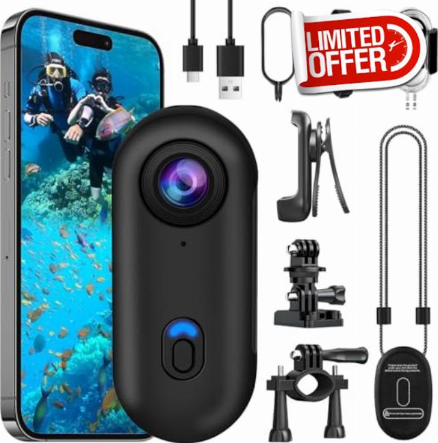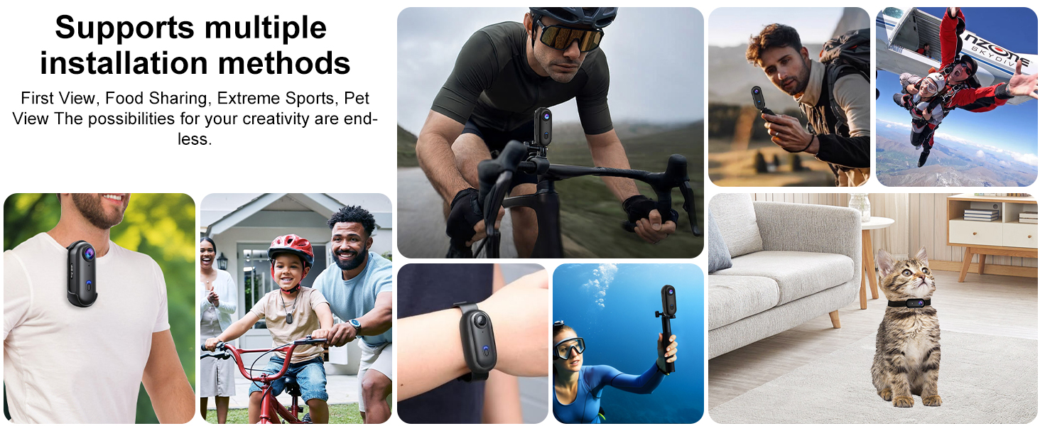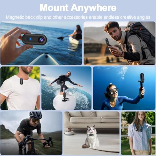 - MORE MOUNTING METHODS: The vlog camera comes with a variety of mounting accessories, so you can easily attach it to bicycles, motorcycles, can attach helmets and other devices; The magnetic lanyard pad allows quick fastening to the chest; with the 360° rotatable spring clip, you can easily place the camera on the collar, pocket, hip, etc.; the strap can be worn on the wrist or on a pet, but also on a drone. Attach to take pictures from different viewpoints in different scenarios