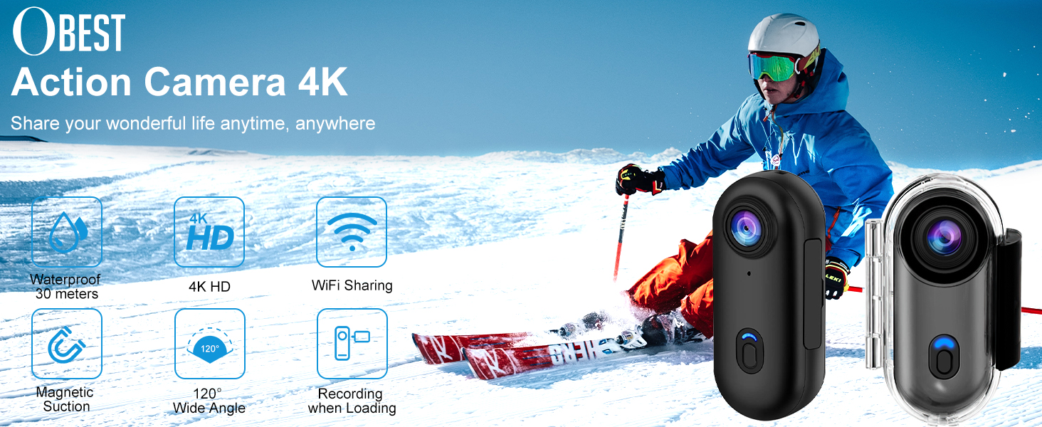 - 4K HD + 120° Wide Angle + Hands-Free POV: With a high resolution of 4k and a wide angle of 120°, the updated OBEST 360 action cam delivers clear and sharp images, to capture a larger field of view. The hands-free POV mode supports hands-free recording of videos from the I perspective and makes it easy to capture beautiful moments, whether you are having fun with your family and children, playing with your pets or traveling with friends
