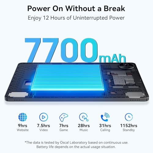 - 【7700mAh Large-Capacity Battery to Meet Your High-End Needs】 This 11 inch large screen tablet, equipped with a large-capacity 7700mAh battery, easily gets you through a full day of work or play! The OSCAL PAD 90 android tablets offers up to 11 hours of video playback, 26 hours of music listening, and 8 hours of gaming, a 30% increase in battery life compared to comparable tablets. This tablet android has plenty of power, making battery anxiety a thing of the past.