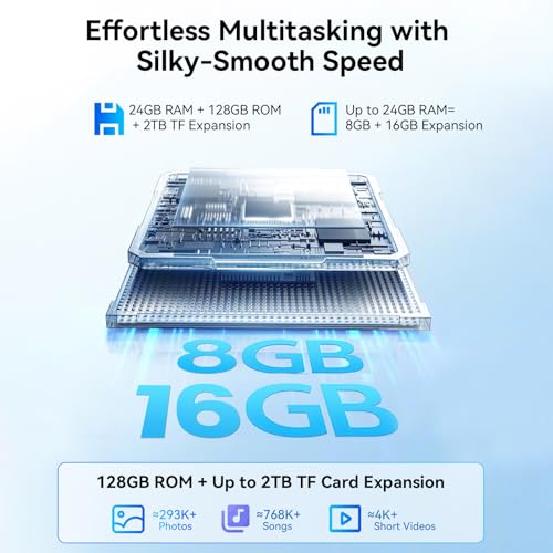- 【24 (8+16)GB RAM + 128GB ROM + 2TB Expansion + T606 Octa-Core】 The OSCAL PAD 90 tablet is powered by a Unisoc T606 processor, helping to improve efficiency and enable smooth multitasking. Equipped with 24GB RAM (8GB + 16GB via expansion technology) and 128GB ROM, it runs smoother and faster. The 11 inch tablet supports up to 2TB of Micro SD/TF cards from all brands, allowing you to store large amounts of media content and e-books, making your life more efficient and convenient. Tip: Expand memory with one click within Settings.
