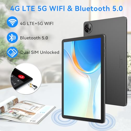- 【More Upgrades】 This tablet with sim card slot (1 SIM + 1 TF card or 2 SIM cards) features 4G and 5G Wi-Fi, perfect for outdoor use without Wi-Fi. It also features facial recognition and quad-positioning with GPS, Glonass, Beidou, and Galileo, expanding your usage scenarios and making it even more portable.