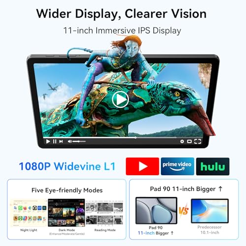 - 【11-inch Tablet + 120Hz Display + Widevine L1 + Netflix】 The OSCAL PAD 90 windows tablet features an 11-inch HD IPS screen with a 120Hz Full HD display, providing a cinematic viewing experience. Widevine L1 certification allows you to stream Netflix, YouTube, HBO, and Prime Video in true 1080p resolution. Whether you're binging series or enjoying your favorite shows, the ultra-high 120Hz refresh rate and eye protection mode ensure smooth and responsive performance, enhancing your entertainment experience and enriching your daily life, making the PAD 90 your best companion.