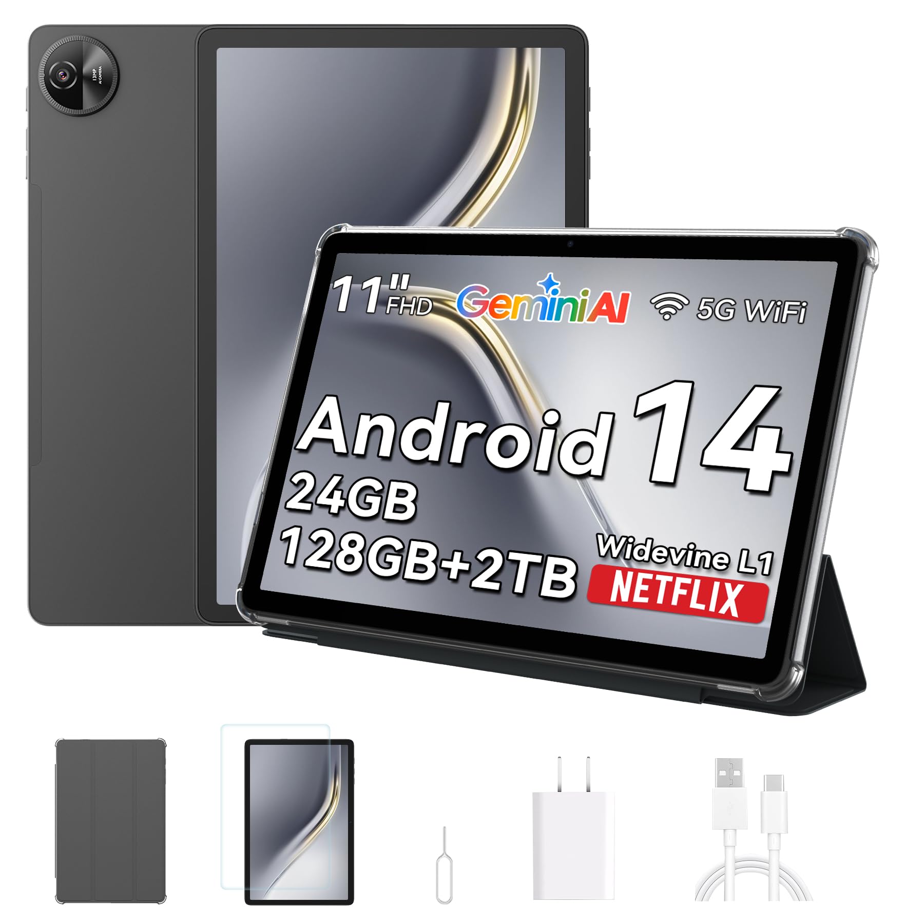 OSCAL Android Tablets 11 Inch, 24GB RAM+128GB /2TB ROM, 4G LTE+5G Wifi Tablet with Sim Card Slot, 120Hz HD, Android 14 Tablet,Octa-Core, 7700mAh, 13MP+8MP, Widevine L1, Netflix,PC Mode 2.0, GPS