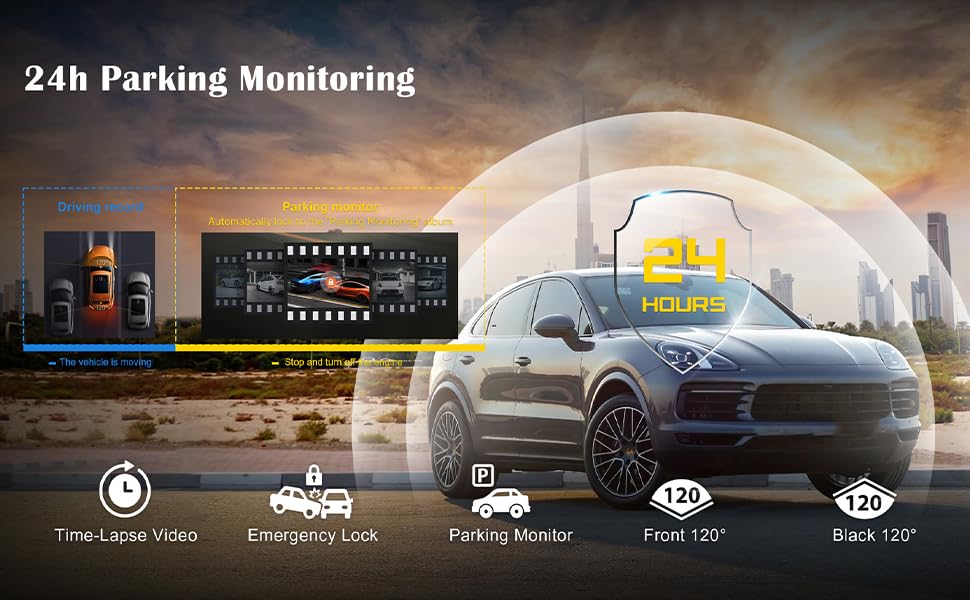 - PARKING MONITOR: Advanced parking mode automatically activates recording when motion is detected whilst your vehicle is parked