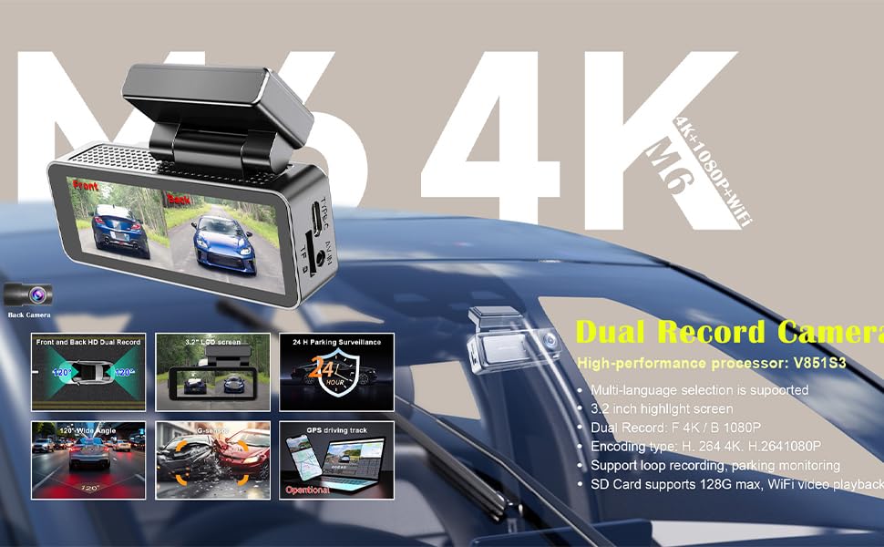 - 4K RESOLUTION: High-quality front and rear dash cam recording with crystal clear 4K resolution for superior day and night visibility
