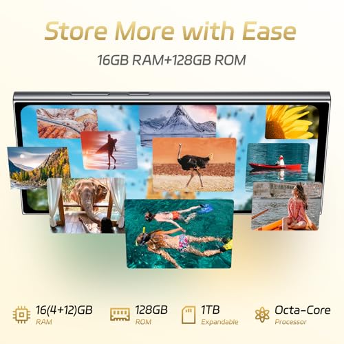 - Powerful Performance Meets Ultimate Freedom: Powered by an Octa-core Processor, it ensures smooth multitasking and fast app launches. The 16GB RAM (4GB+12GB) not only allows your apps to open instantly, but also ensures smoother visuals when handling work tasks or playing games. In addition, this gaming phone has 128GB ROM (expanded to 1TB), can hold so many photos,videos,documents,and applications,so you never worry about no storage. This high-performance smartphone is perfect for both work and play, making it a top choice among mobile phones.