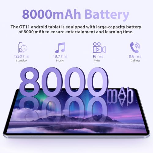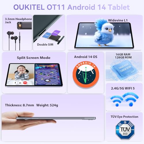 - 【8000mAh Battery + 4G LTE + 5G Wi-Fi】OUKITEL gaming tablet built in a 8000mAh large-capacity battery, giving it a 600 hours of standby time, 8.5 hours of video, 7 hours of gaming time. The 11 inch tablet has multi-function Type-C and OTG, which can ensure fast charging and stable connection. Android 14 tablet supports dual 4G LTE SIM and 2.4G/5G dual-band high-speed Wi-Fi. Reduce network interference for a better and faster online experience.