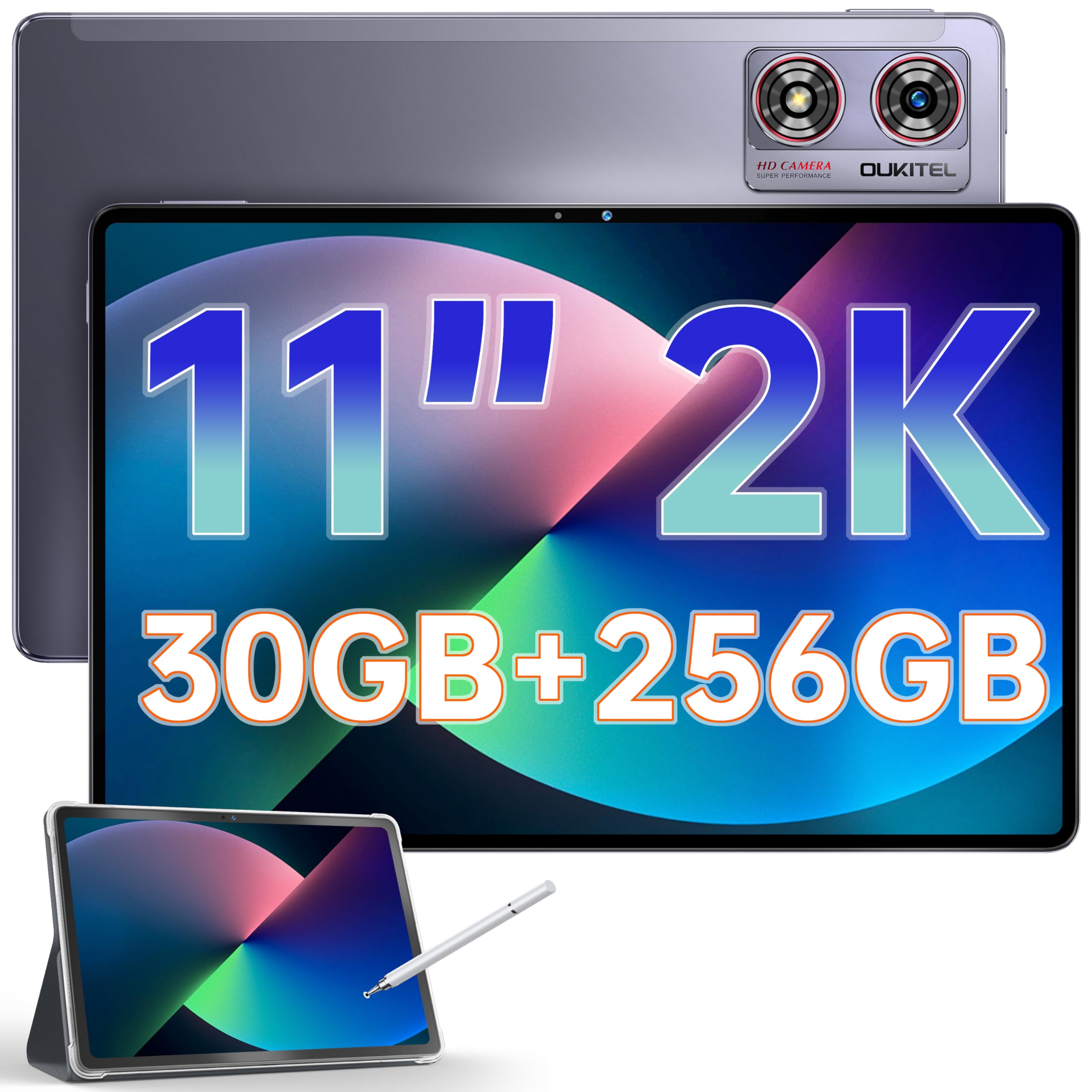 OUKITEL OT8 Tablet 11 Inch – 30GB RAM 256GB ROM Gaming Tablets Android 13, 8800mAh Tablet With Pen, 13MP+8MP Camera,Speaker*4 | TÜV | GPS | OTG | 2K Screen | TF 1TB, Black