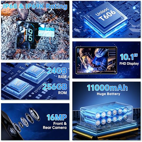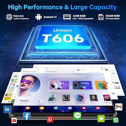 - 【24GB RAM + 256GB ROM & Octa-Core】 OUKITEL RT9 Rugged Tablet is equipped with 24GB (6GB + 18GB Expanded) RAM + 256GB ROM; it can be expanded up to 1TB using a TF card, which allows you to run multiple apps, games, and resource-intensive tasks at the same time without lagging or lag. The OUKITEL Rugged Tablet RT9 with the Unisoc T606 Octa-Core Processor that can reach up to 1.60 GHz for a lighter, faster, and smoother user experience.