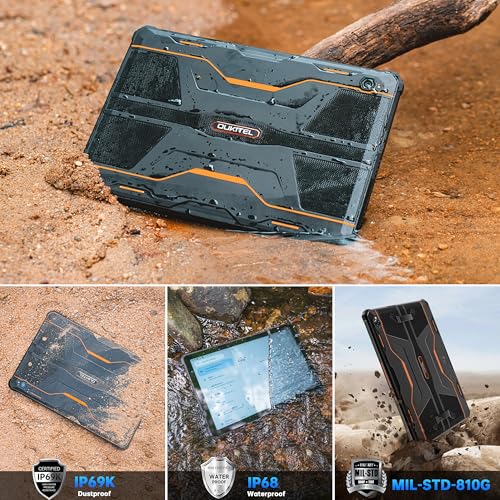- 【IP68/IP69K & Waterproof Tablet】OUKITEL RT9 Rugged Tablet has passed the IP68/IP69K waterproof performance test, which makes the tablet waterproof, whether you are in the rain, taking a shower, you can use the waterproof tablet with confidence. OUKITEL RT9 waterproof Tablet is designed with a perfect closed case and tested to strict military standards, dustproof and drop proof, is a good companion for construction workers, cyclists, and outdoor explorers.