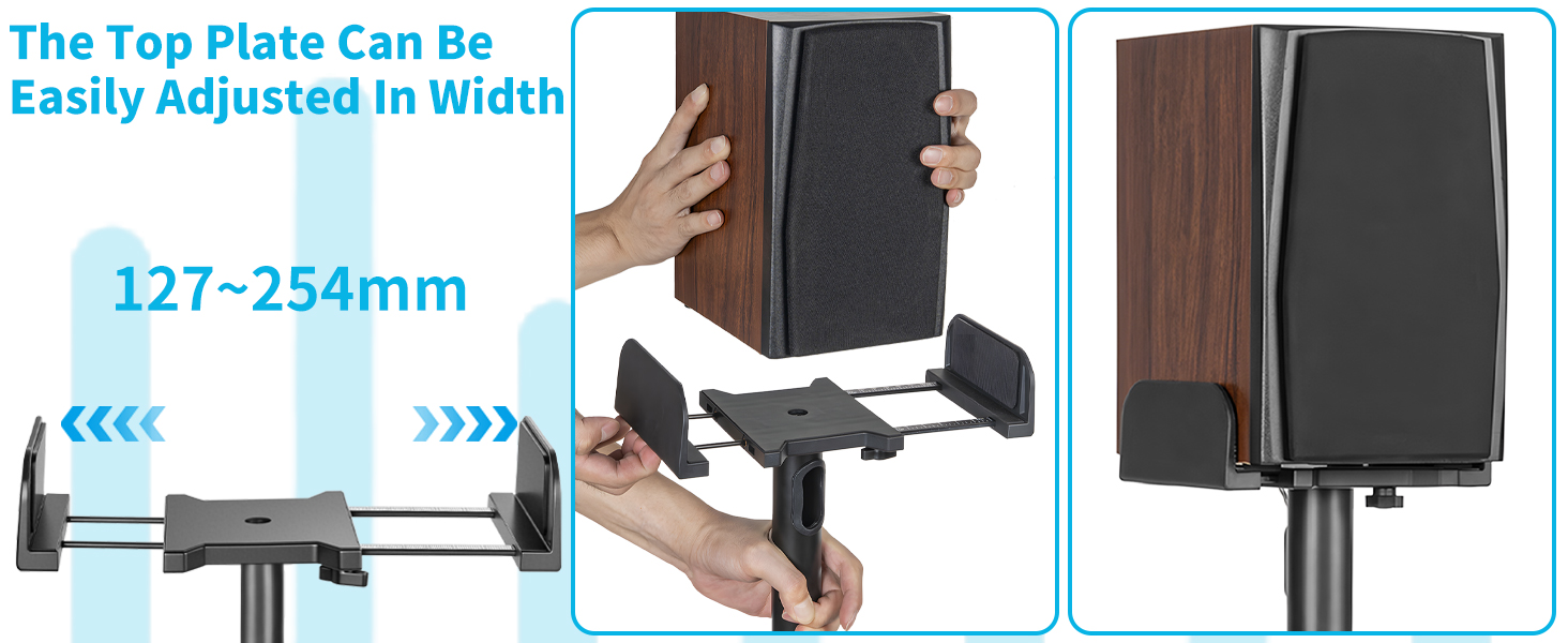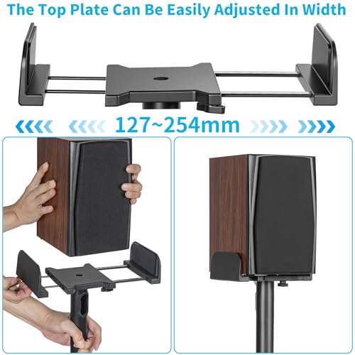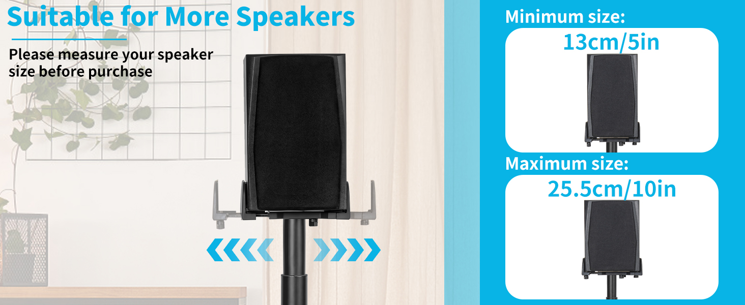 - 【Universal Speaker Stands】Designed for 5-10" (12.7-25.4cm) bookshelf speakers with 5kg weight capacity, our floor stands securely fit most major brands including Sonos, Sanyun, Samsung, Sony, Bose, JBL, Edifier, Yamaha, JAM, Nzxt, Wharfedale and more. The adjustable top tray ensures perfect positioning for your audio setup