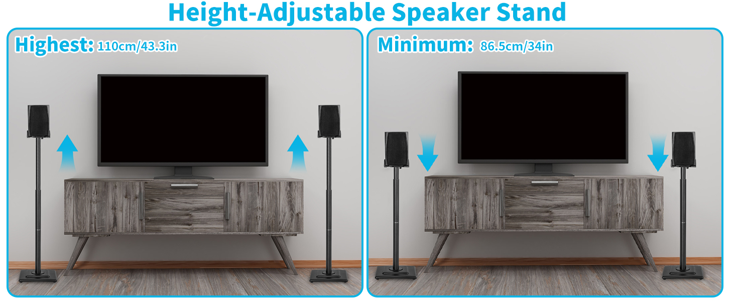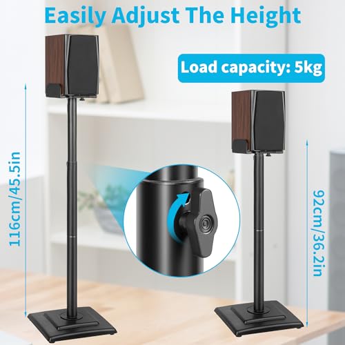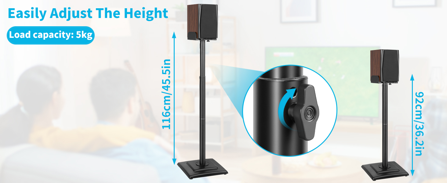 - 【Hight Adjustment】Easily adjust the height between 92-116cm (36.2-45.5") to achieve ideal speaker placement for your room acoustics. The smooth telescoping mechanism locks firmly at your preferred listening level for crystal-clear sound projection.