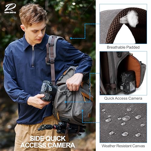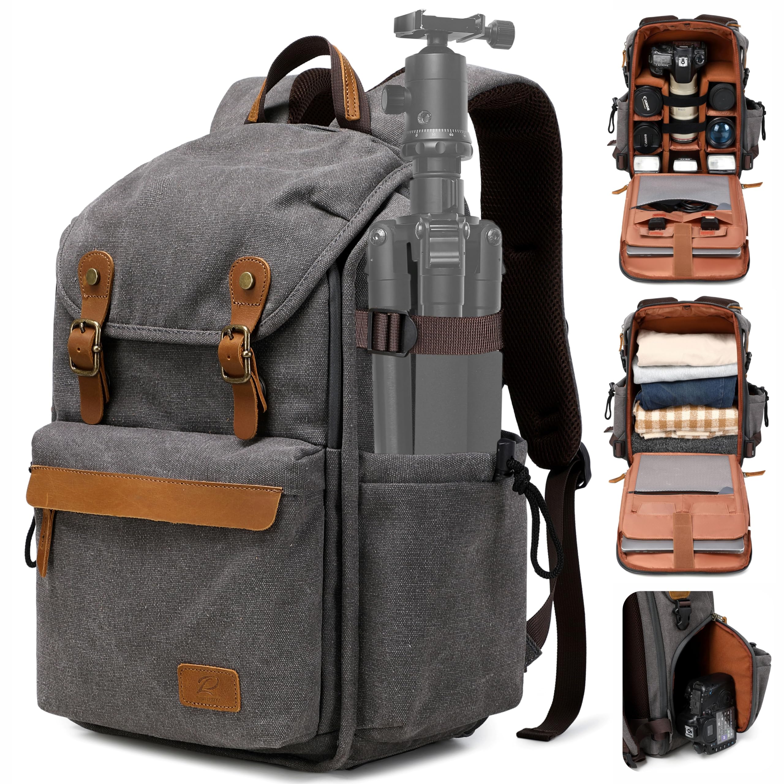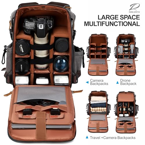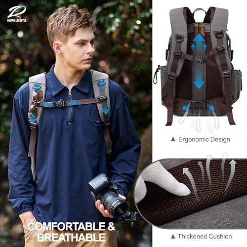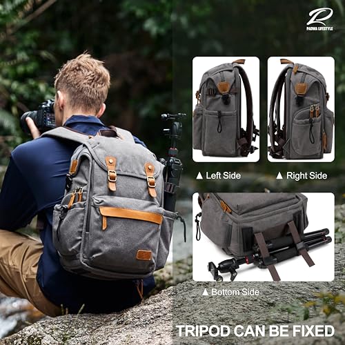 Padwa Lifestyle Camera Backpack – Canvas Camera Bag with 16” Laptop/Lens & Tripod Compartment for Photographers