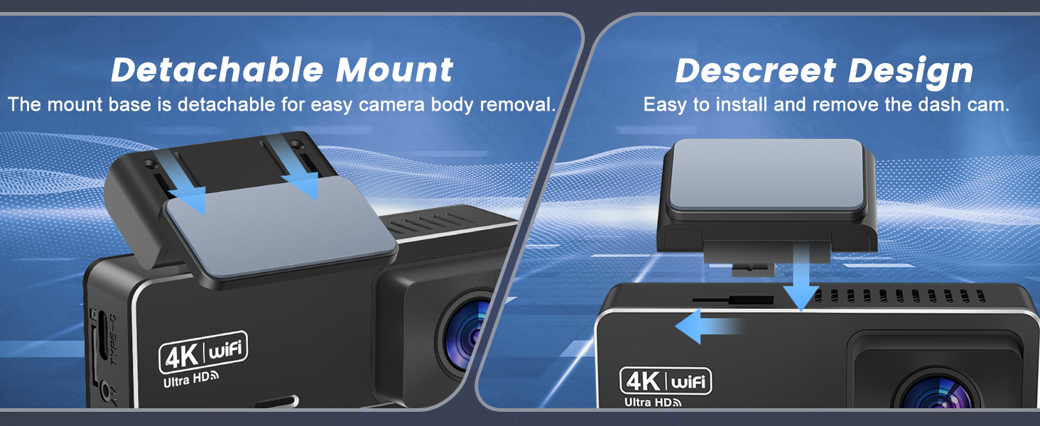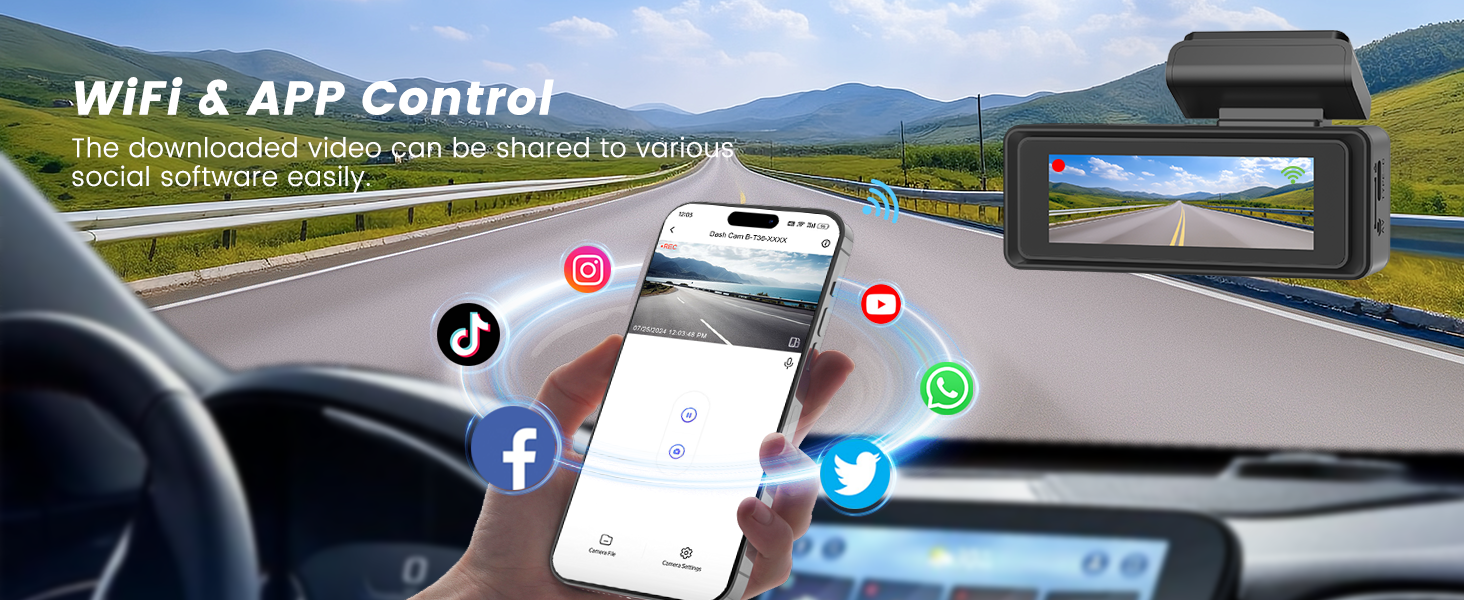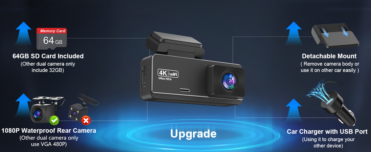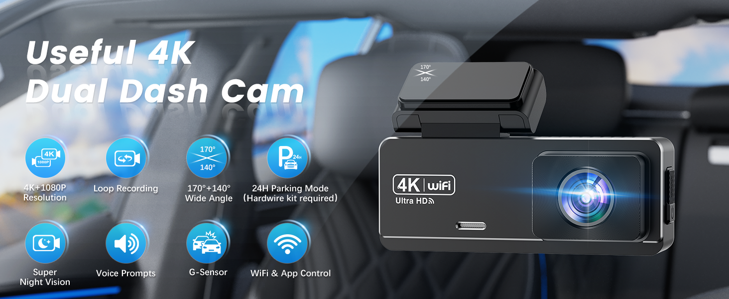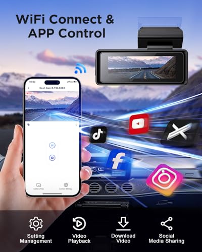 - ★【Smart Wi-Fi Dashcam & App Control】This 4K dash cam front and rear comes with "Viidure" APP for Android or iOS smartphones to get a live stream, download videos, change settings, edit and share your footage simple. You can share your travel scenery and moments with friends, family and share the footage from the dash cam front and rear wireless to the social media platforms with just one click. (Note: WiFi dash cam available distance of the WiFi connection is 9ft-16ft, it will disconnected automatically if out of the range.)