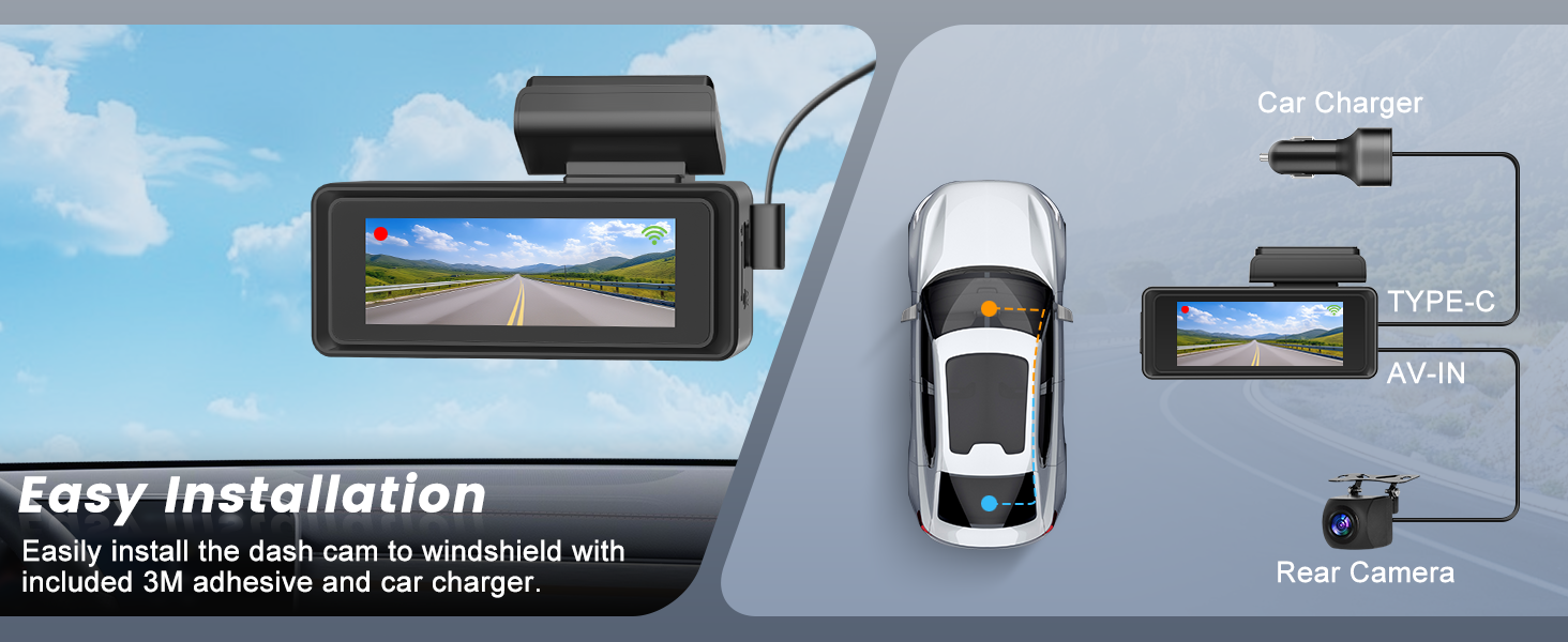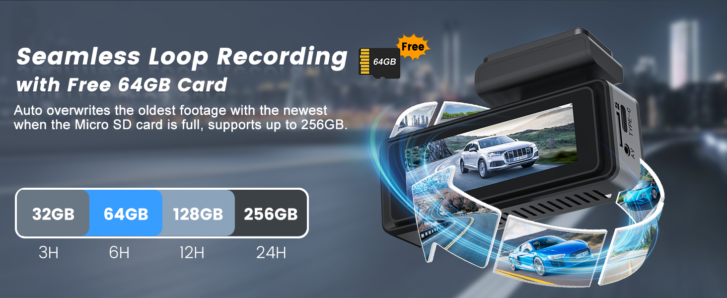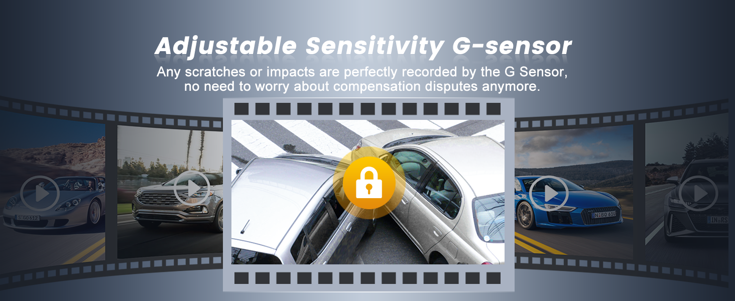 - ★【Dash Cam with Loop Recording & Emergency Accident Locks】The dashcams with seamless loop recording automatically overwrites the oldest unlocked videos when the memory card is full, ensuring the integrity of the recording and saving storage space for more efficient video recording. Variable sensitivity G-Sensor automatically detects a sudden collision and immediately saves the relevant footage and locks it to SOS file. These functions combination of dash cam front and rear camera helps preserve important video evidence and better protects you in the event of an accident.