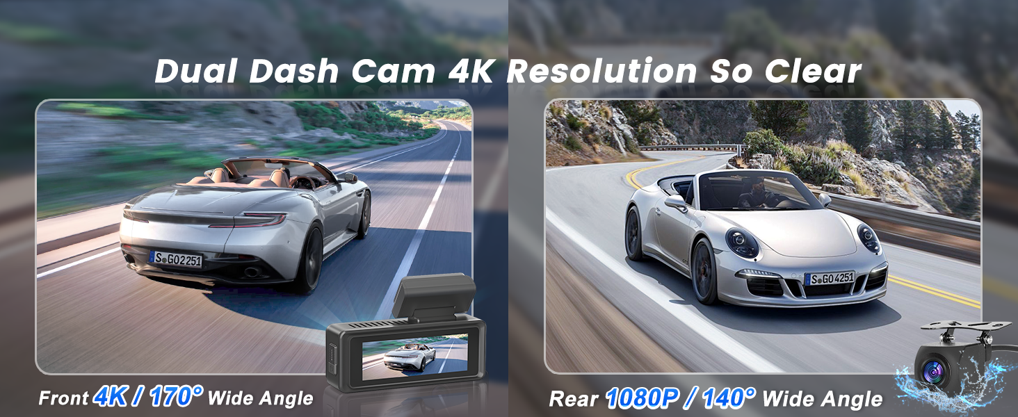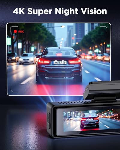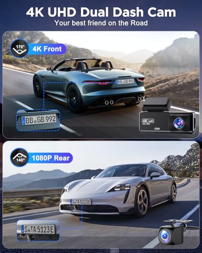 PENEMAY Dash Cam Front and Rear 4K+1080P, Dash Cam