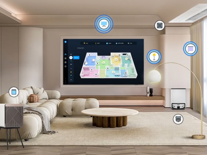 ⁷Requires Samsung account to access the full range of Samsung Tizen OS features including the smart TV features and apps. If you choose not to log in, you will only be able to connect to terrestrial TV (applicable to devices with tuners only) and external devices (e.g. via HDMI). You may need a separate device (e.g. PC or mobile) to create a Samsung account.