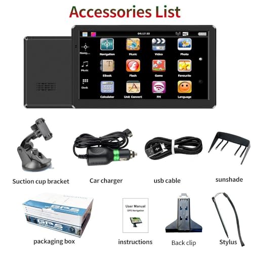 - 【Multimedia Entertainment & FM Transmitter】Not just a navigation device, it also supports MP3/WMA music, MP4/AVI/3GP videos, TXT e-books, and JPG/GIF/BMP/PNG images. Use the built-in FM transmitter to connect to your car stereo for enhanced audio quality.