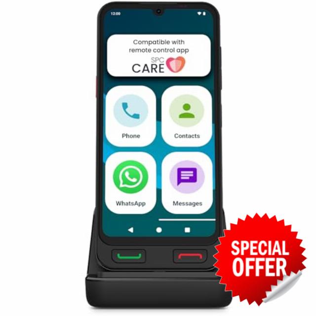 - | REMOTE ADJUSTMENTS FROM YOUR MOBILE | Compatible with the free SPC Care app (Android and iOS), which allows loved ones and caretakers to rearrange icons, increase the volume, and increase the font size. And all this is done remotely: you manage everything from your mobile phone, they just have to use their device as usual.