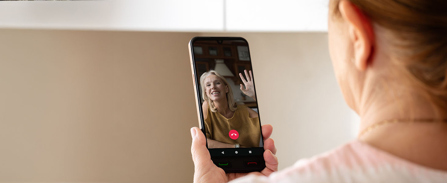 - | EASY TO USE WITH XXL ICONS | An unlocked mobile phone for seniors that includes physical buttons for answering and ending calls, a 6.1" screen, and “Easy Mode” with large icons for favourite apps. A simplified interface so they can make calls, receive WhatsApp messages, and view their favourite contacts with photos. It's made to be used autonomously, without fear of making mistakes.
