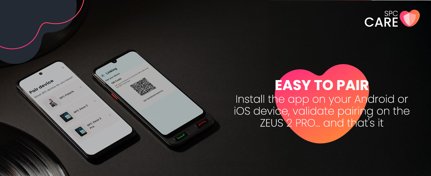 - | SOS BUTTON AND SAFETY ALERTS | The SOS button on the side allows them to call for help instantly: it sends a cycle of calls and text messages to the pre-configured emergency contacts, repeating the cycle up to three times if there is no response. Additionally, the SPC Care app gets notifications if their phone has not been used for several hours and if their battery is low. Two ways to act in time if something is not right.