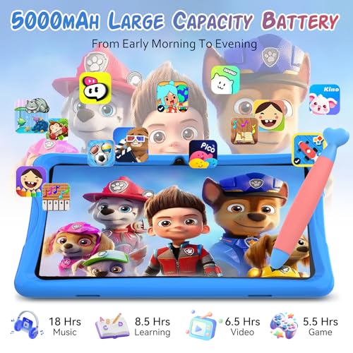 TABWEE Kids Tablet 10 inch, Android 15 Tablets for Kids, Parental Control, Pre-Installed Kiddos Software & Kids Space, Includes Case & Stylus Pen, 12GB RAM 64GB ROM, 2TB Expand, HD IPS Screen(Blue)