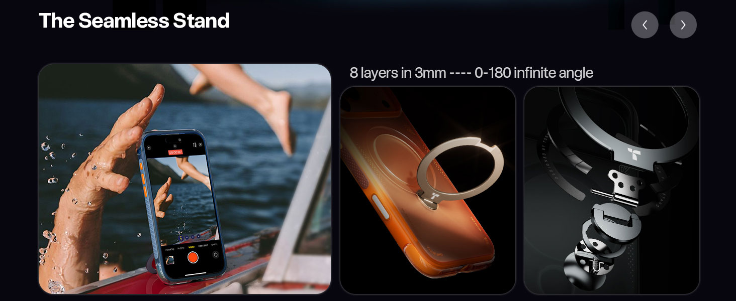 Features | 9H Explosion-proof Glass | Airbags & Mil-Grade Protection | Airbags & Mil-Grade Protection | Airbags & Mil-Grade Protection | Airbags & Mil-Grade Protection | 360° Rotating Ring Stand | 0.3 inch Super Thin&18W Charge |