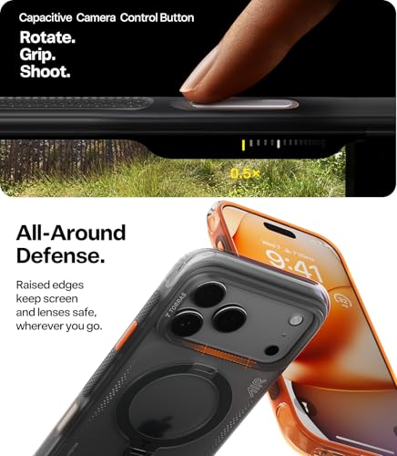 TORRAS Ostand Q3 Air for iPhone 17 Pro Max Case with Real Airbags, Military Grade Protective | Fit for MagSafe for iPhone 17 Pro max cover with Camera Control | Shockproof & Stylish Midnight Black