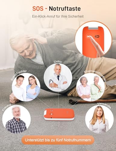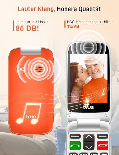 TRUE Senior Mobile Phone with Large Buttons, GSM Filp Phone for Elderly with 2.8″ Color Display, SOS Button, S70, Orange