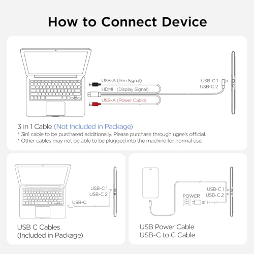 *Condition: The computer does not have a full-featured USB-C port, at this time, you need to use the 3-in-1 data cable connection. The 3-in-1 cable is not standard and needs to be purchased separately from ugee official channels.