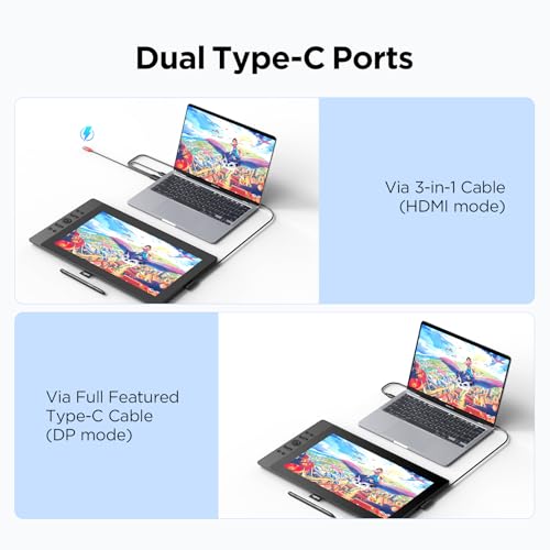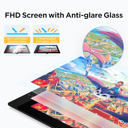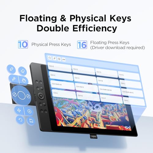 - 【Efficiency and Customization 】Streamline your workflow with 8 physical & 16 on-screen hotkeys and a round dial, providing up to 26 different functions that expedite your creative process. Whether you're adjusting brush sizes or switching between layers, the UE16 Pen Display puts efficiency and control at your fingertips.