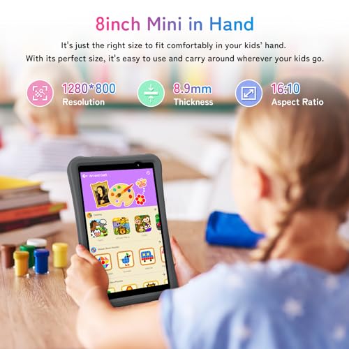 - 8-inch HD Vivid Display & Smart Split Screen: The G1 Tab Mini Kids 8-in screen puts vivid colors on full display and features a resolution of 1280*800, which ensures a crisp and clear viewing experience. Moreover, it is featured with eye care mode, night mode, and brightness adjustment, which helps reduce eyestrain and provides a comfortable viewing experience. The Split Screen feature allows kids to use two applications on the screen simultaneously. your child can attend online classes, make video calls, and perform creative tasks simultaneously.
